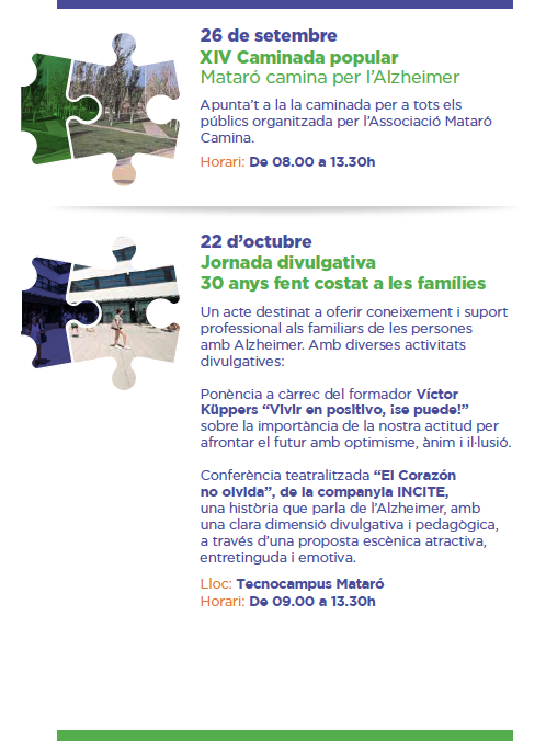 Un acte destinat a oferir coneixement i suport professional als familiars de les persones amb Alzheimer. Amb diverses activitats divulgatives: