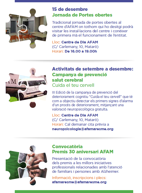 Lloc: Centre de Dia AFAM (C. Carlemany, 10, Mataró)