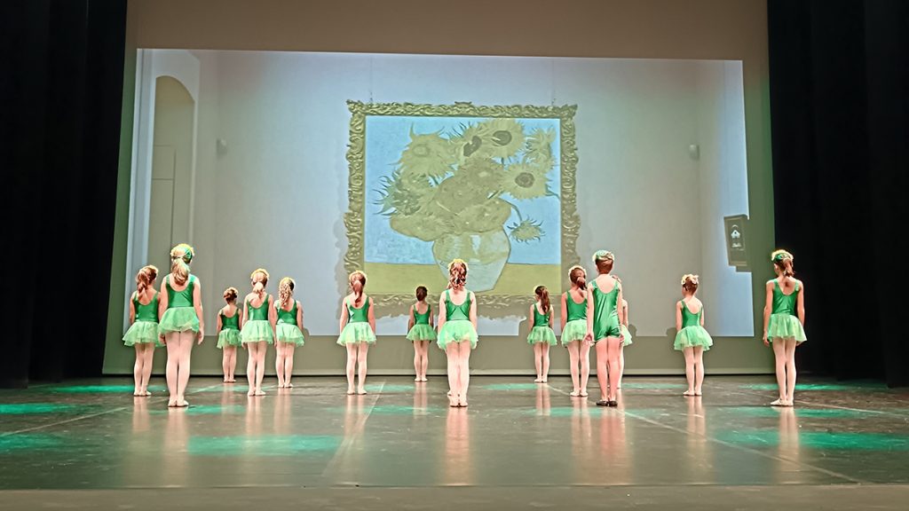 Prop de cent dansaires de totes les edats van fer un recorregut per la història de la pintura i la música. En un ambient familiar, la composició creada per la directora de l’escola va fer gaudir als assistents a la mostra.