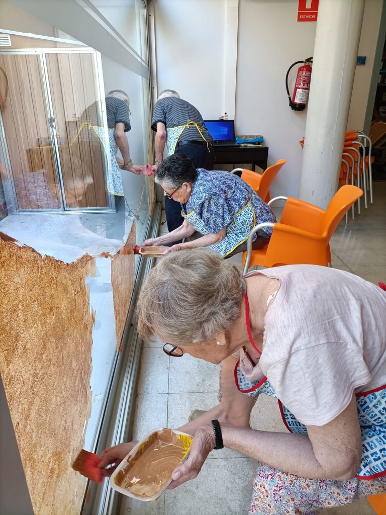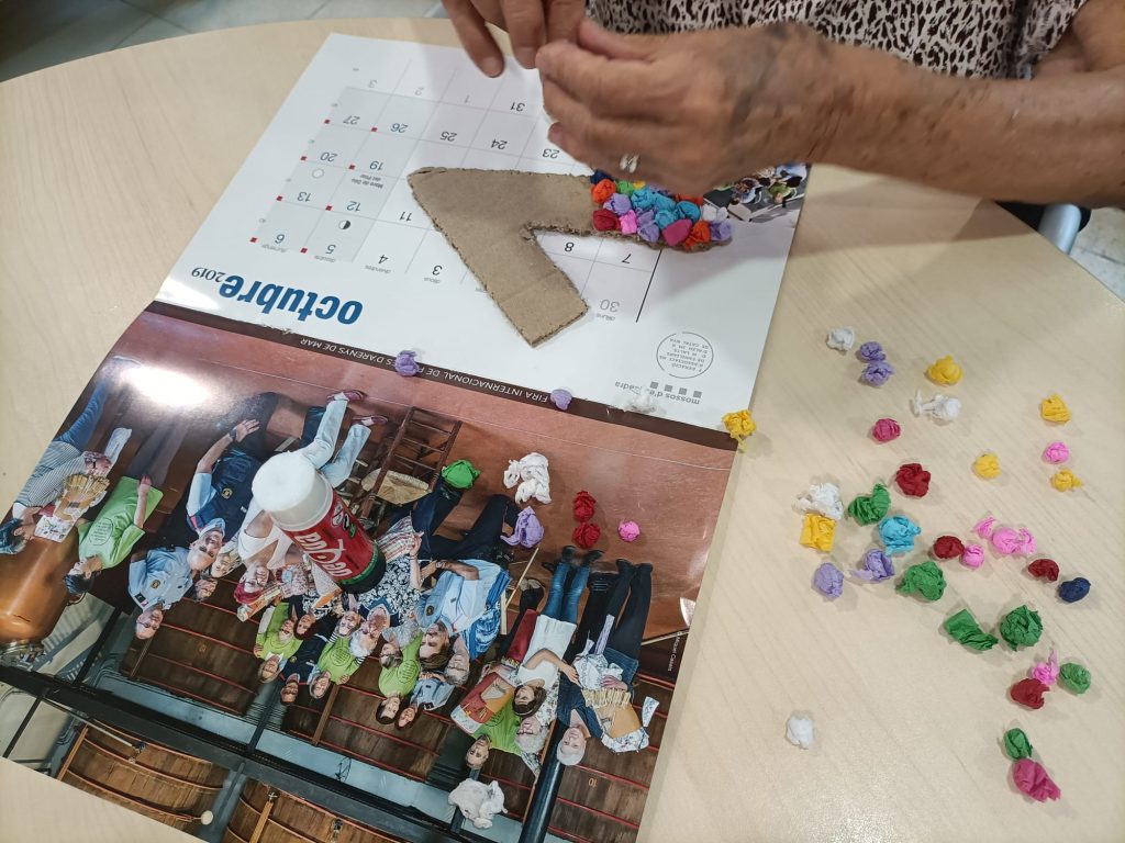 Aquest mural d’estiu no només serveix per decorar el centre, sinó que també estimula i fa sentir bé als participants. Els usuaris i usuàries s’han dividit en tres grups per treballar en la creació d’aquest mural, demostrant la seva passió per les manualitats.