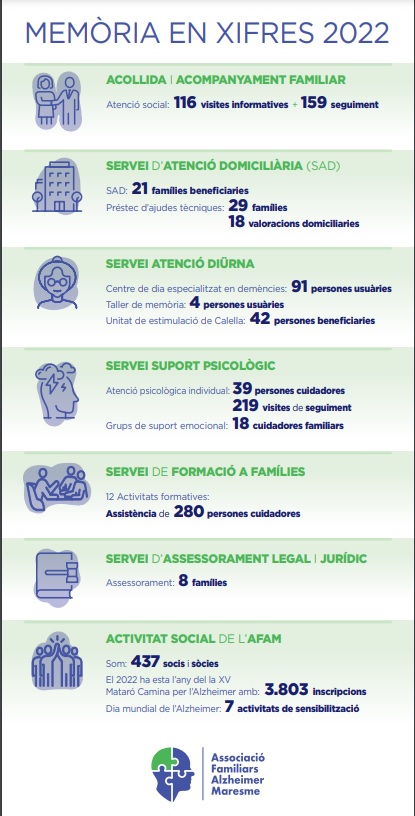 L’assemblea extraordinària, tal com preveuen els estatuts, es va constituir per aprovar el canvi de nom de l’associació. Aquest fet mostra la realitat del servei que estem donant i també la voluntat d’estar a prop de famílies i persones diagnosticades amb demències neurodegeneratives. El nom aprovat és Associació de familiars de persones amb Alzheimer i altres Demències del Maresme.