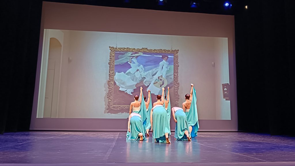 Prop de cent dansaires de totes les edats van fer un recorregut per la història de la pintura i la música.  En un ambient familiar, la composició creada per la directora de l’escola va fer gaudir als assistents a la mostra.