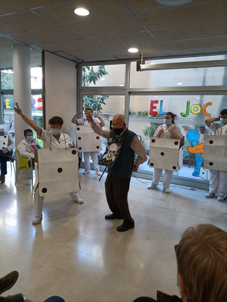 En el centre vam organitzar tres grups de disfresses, corresponents als tres jocs més populars: El joc de l’oca, el parxís i el dòmino.