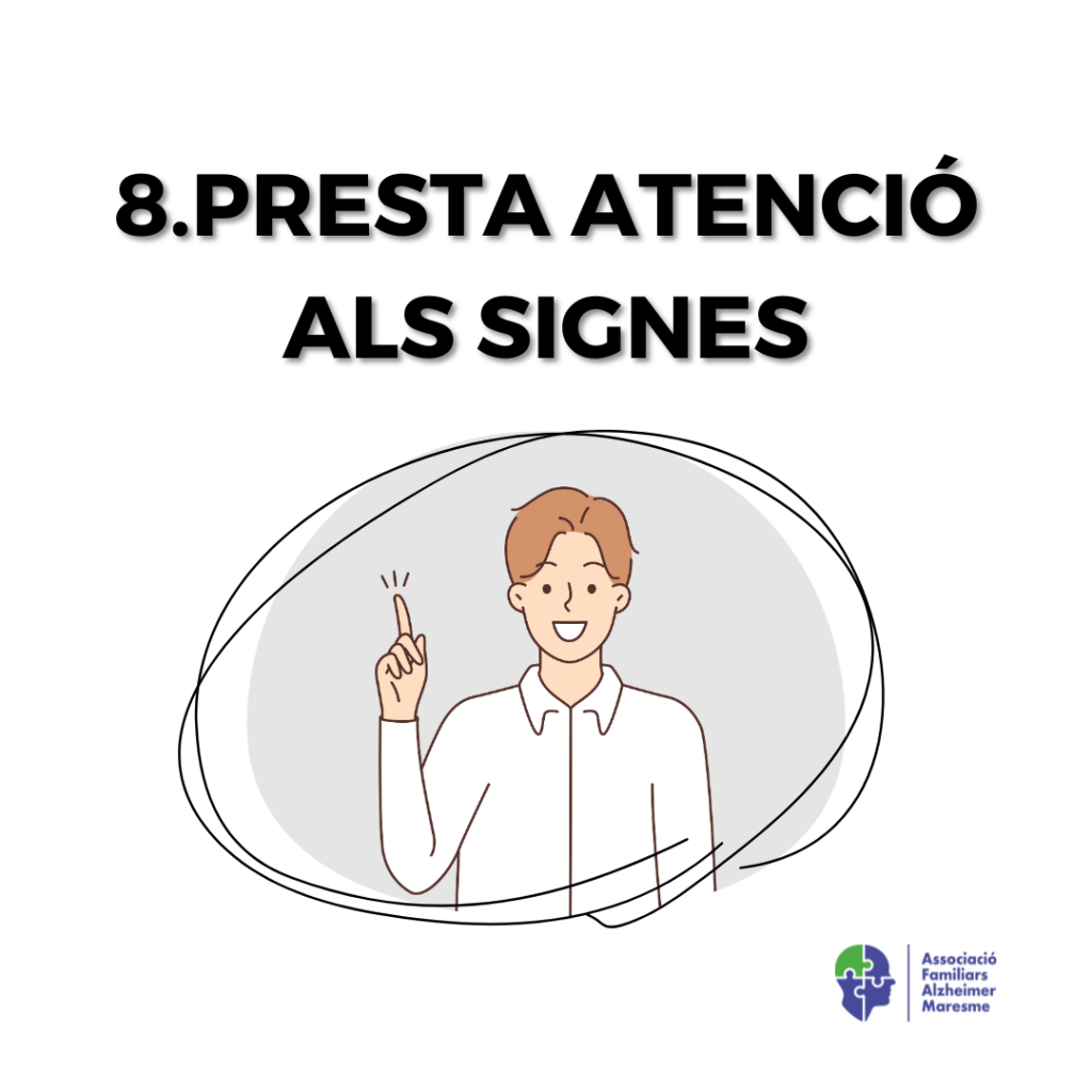 És molt important estar alerta dels signes o indicis mencionats, ja que a través d’aquests podràs tenir una idea de l’evolució de la persona amb Alzheimer. Això et permetrà saber com actuar a poc a poc segons els que vagis apareixent.