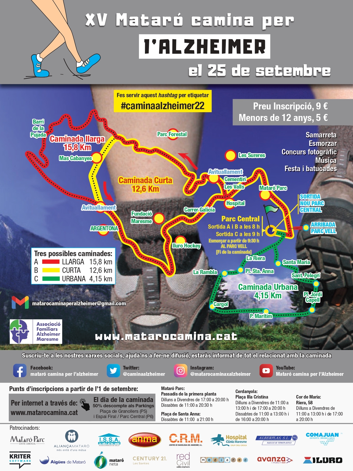S’ha recuperat en el 2022 la normalitat amb la XV Camina per l’Alzheimer. Per aquest motiu s’han preparat un munt de sorpreses i animacions a la sortida i a l’arribada dels participants. Us hi esperem a tots i totes!