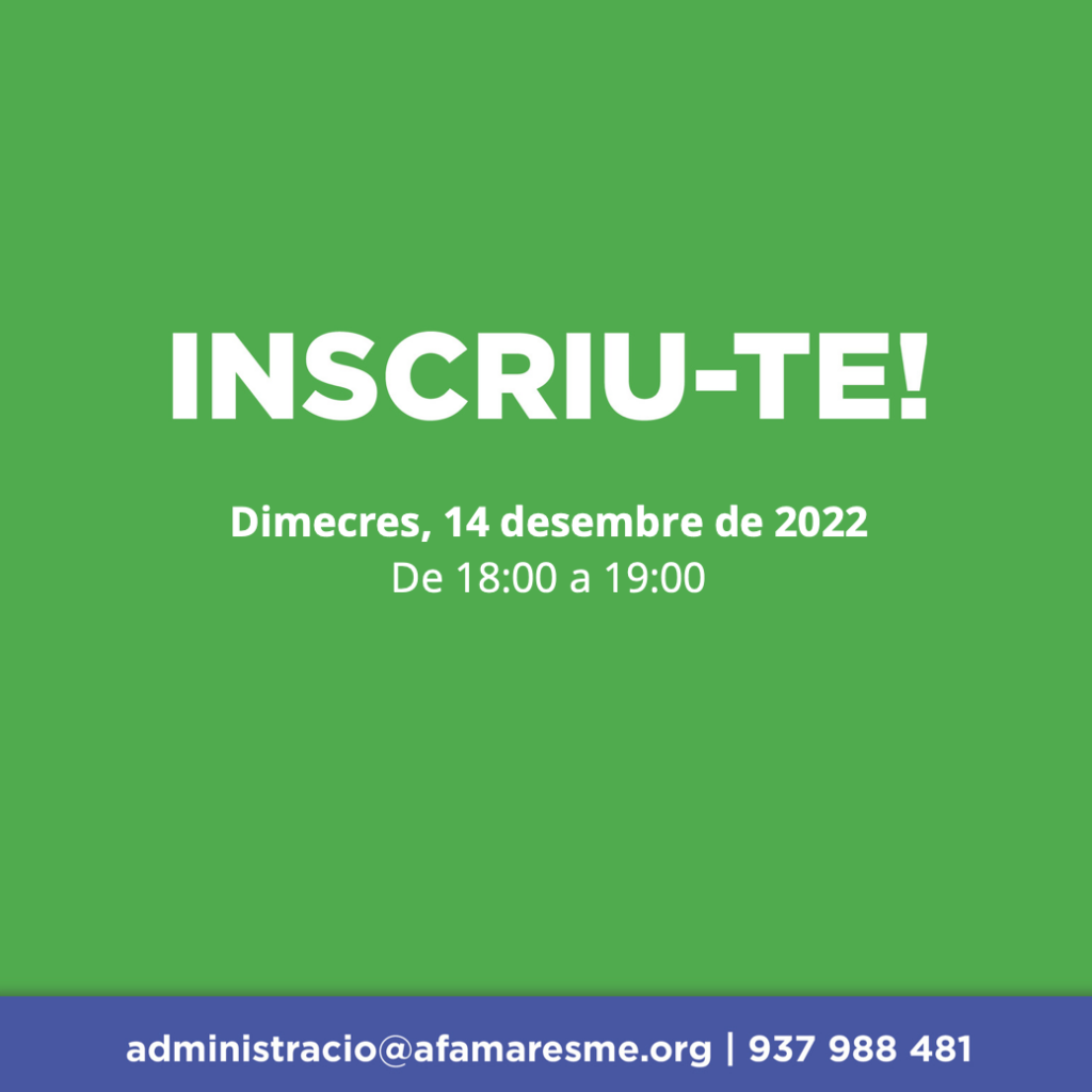 Inscriu-te enviant un correu a administracio@afamaresme.org o trucant al 937 988 481