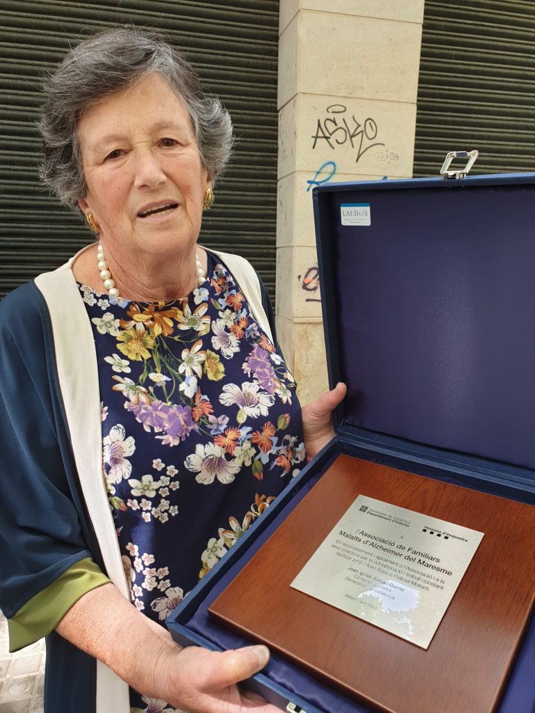 La Sra. Àngels Fradera, Presidenta d’AFAM, ha recollit la placa de mans de l’Alcalde de Mataró, el Sr. David Bote.