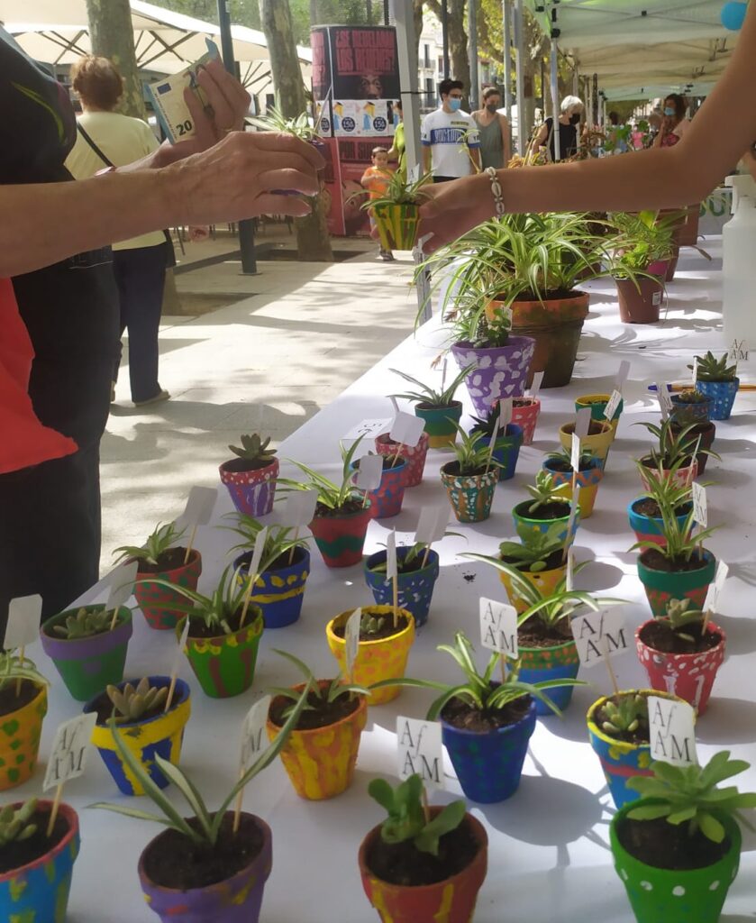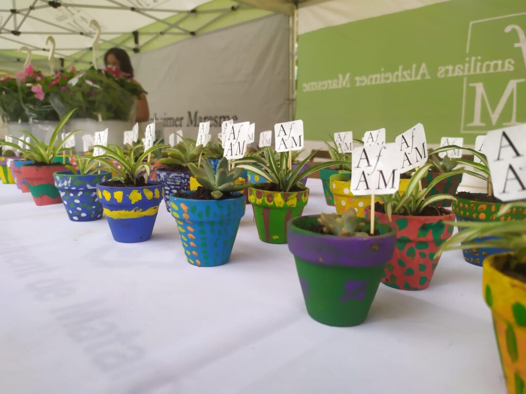 A més, amb la finalitat de recaptar diners per l’Assocaició, vam animar als visitants a inscriure’s en la caminada per l’Alzheimer #MataróCamina2021 i vam posar a la venda alguns elements de merxandatge, així com les plantes que els nostres usuaris van plantar als testos que ells mateixos havien decorat.