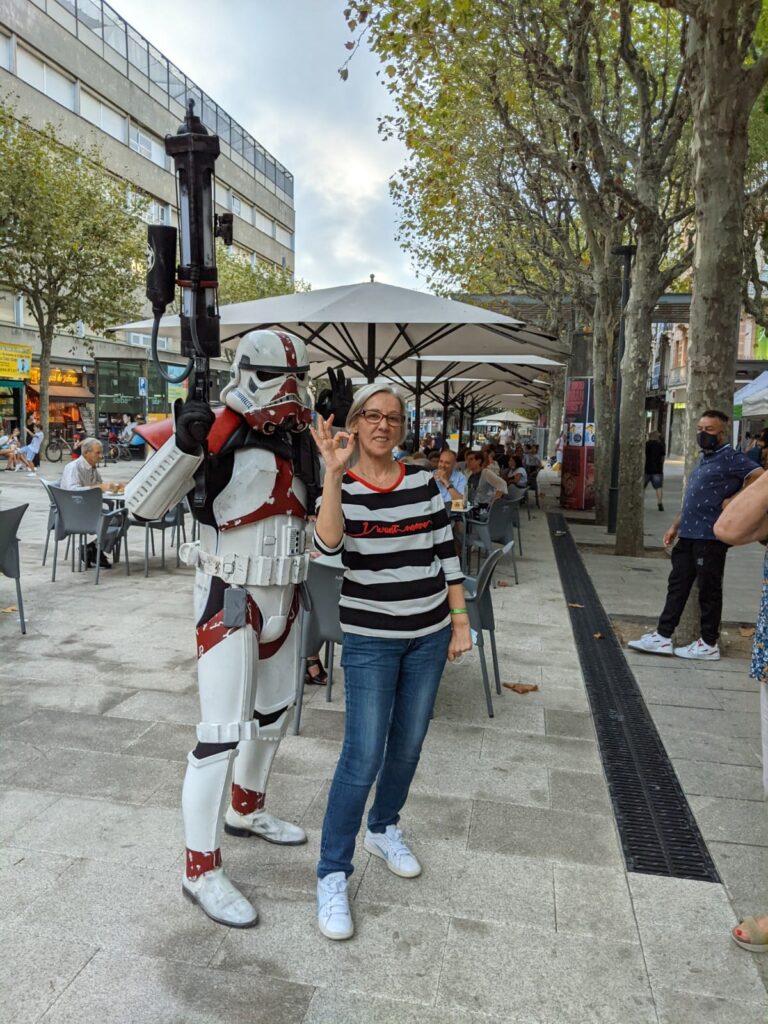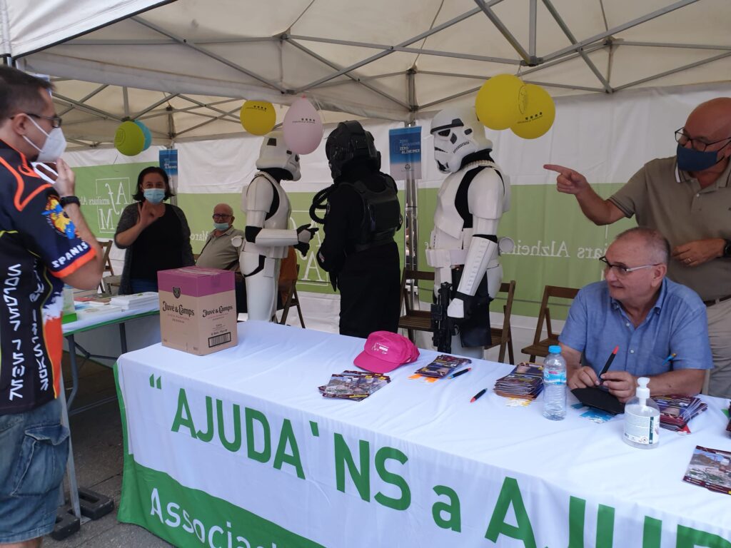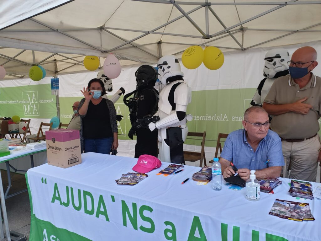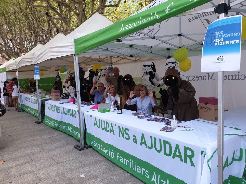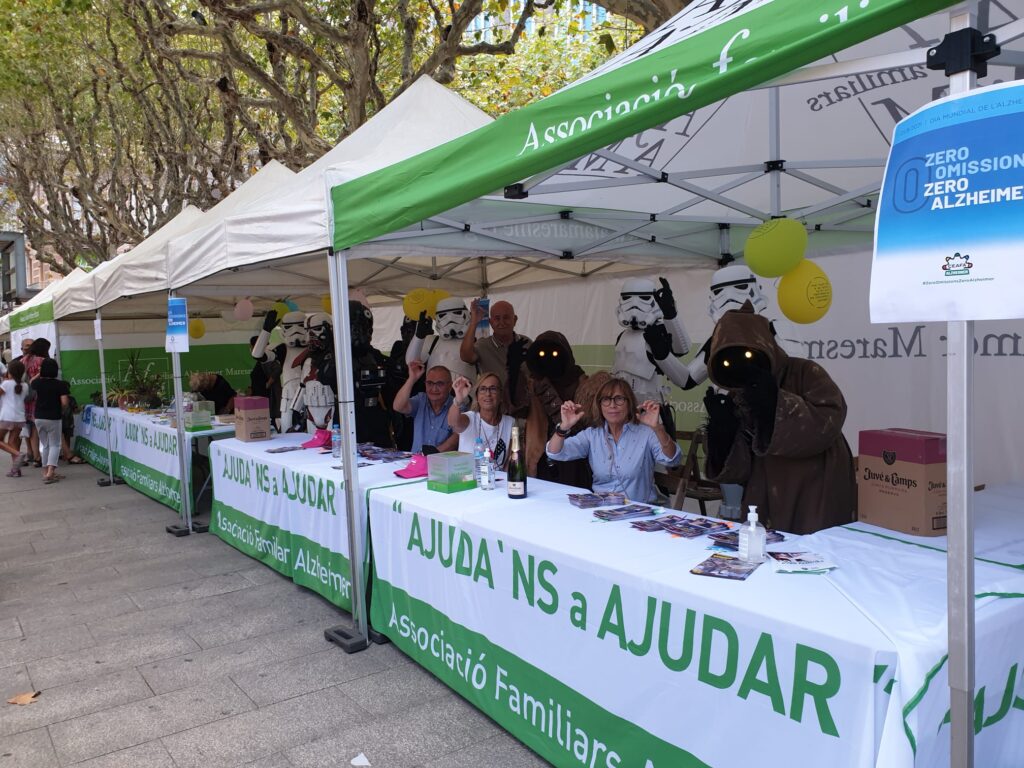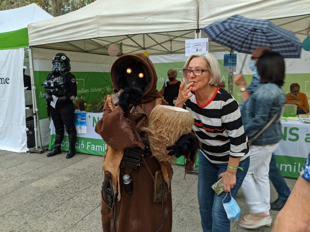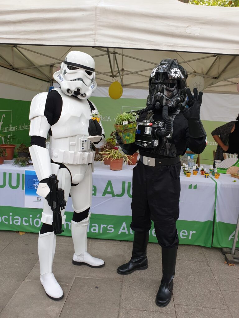 A la tarda vam rebre un suport molt especial. La visita de l’exèrcit d’Star Wars, que amb la seva presència ens van ajudar en la nostra lluita contra l’Alzheimer. Els personatges més carismàtics de la saga es van sumar a la campanya que CEAFA ha creat pel Dia Mundial de l’Alzheimer, #CeroOmisionesCeroAlzheimer fent el gest del zero amb la ma.